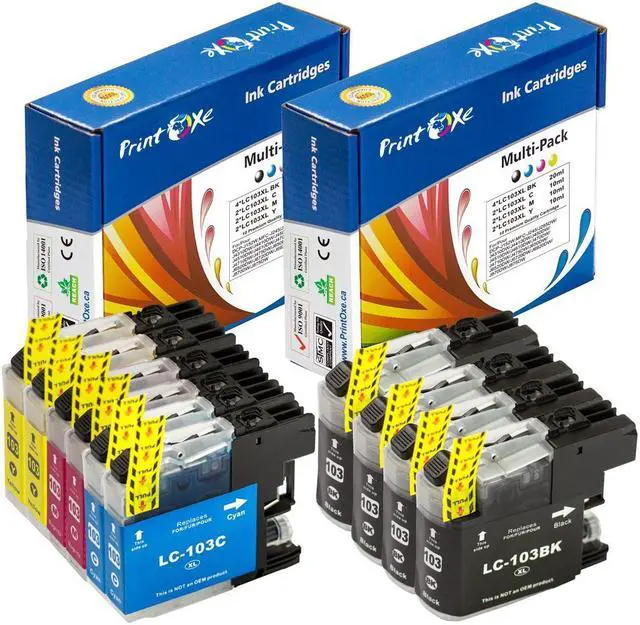 10 superior quality Brother LC 101XL / LC 103XL Compatible Cartridges 101 / 103; 4 Black, 2 Cyan, 2 Magenta, & 2 Yellow for use in Brother