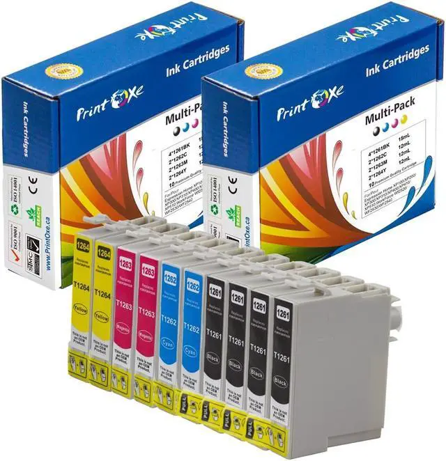 10 Cartridges 100% compatible with Epson 126; 4 Black 2 Cyan, 2 Magenta, and 2 Yellow.