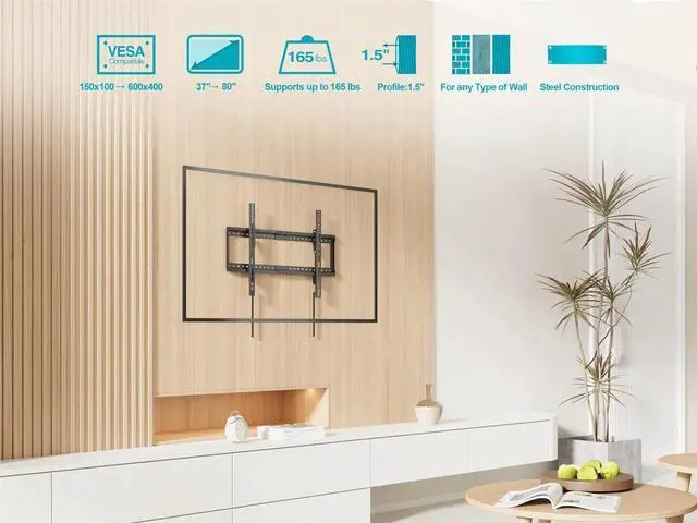 It has undergone extensive safety testing and has been certified by Underwriters Laboratories (UL), which ensures that it will perform safely and reliably. This bracket is designed to mount an LCD, LED, or Plasma display with a VESA mounting pattern between 50x75 and 400x400, which includes most 32 inch to 55 inch TVs. It can be mounted to any type wall (brick, concrete, wood stud, etc. ) and can safely hold up to 165 lbs (including the weight of the mount itself). It features a built-in spirit level and mounting hardware is included.