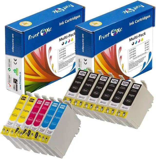 12 compatible Ink Cartridges with Epson 127, 6 Black (E-1271), 2 Cyan (E-1272), 2 Magenta (E-1273), and 2 Yellow (E-1274).