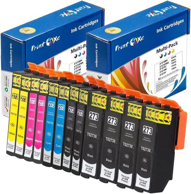 12 superior quality Epson T273 Compatible Ink Cartridges T273XL; 4 BK T2730, 2 Photo Black T2731, 2 Cyan T2732, 2 Magenta T2733, & 2 Yellow T2734 Compatible 273 for use in