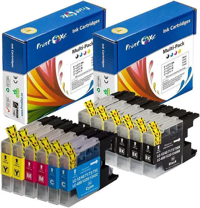 12 Premium Quality Ink Cartridges Compatible with Brother LC-71 & LC-75; 6 BK, 2 Cyan, 2 Magenta, & 2 Yellow = 2 Complete Sets + 2 BK (LC71 LC 75).
