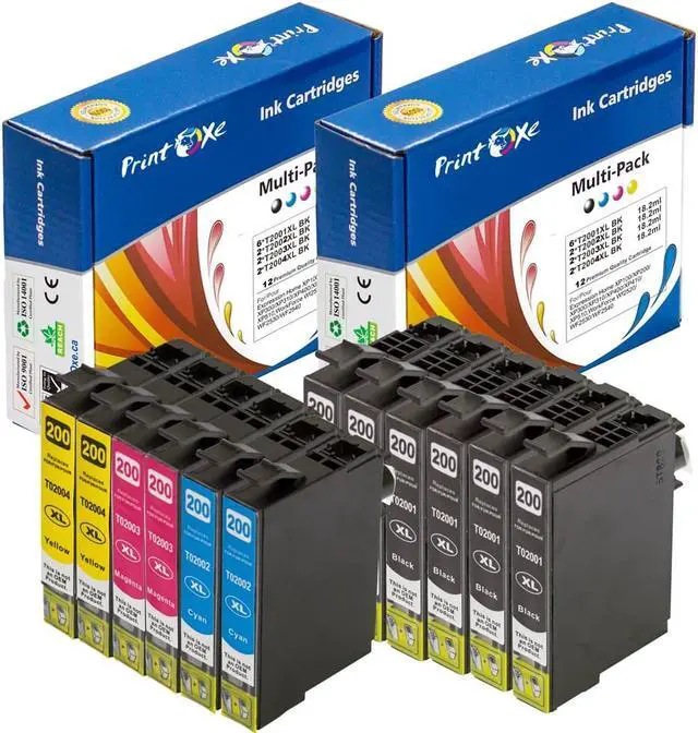 12 Epson 200XL Compatible Cartridges ; 6 Black (T2001XL), 2 Cyan (T2002XL), 2 Magenta (T2003XL), & 2 Yellow (T2004XL) Replacement for (models under description)