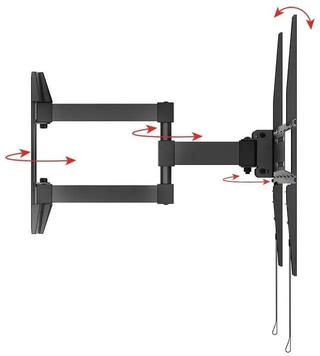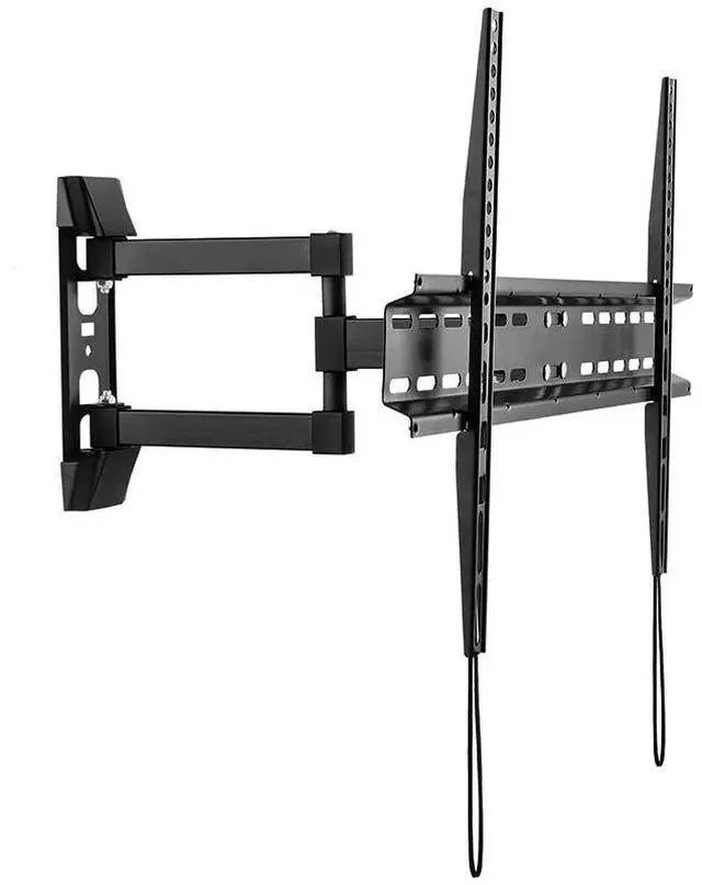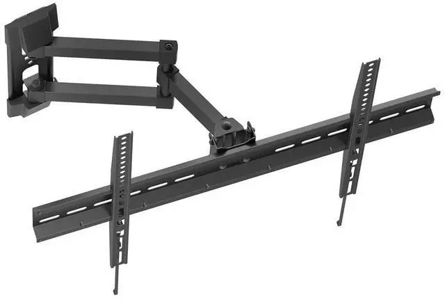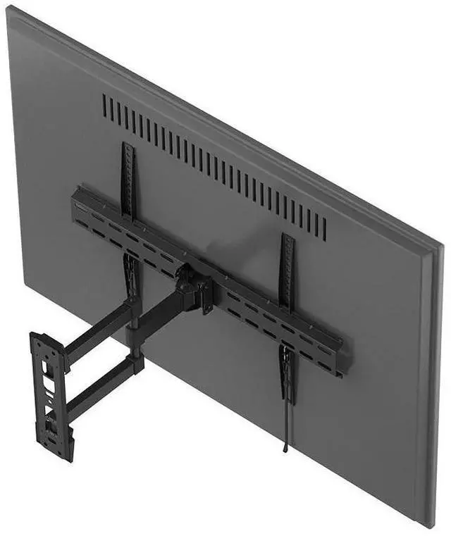 The Monoprice Full Motion Articulating TV Wall Mount Bracket focuses on a minimal footprint on the wall. Minimizing the amount of space required for mounting allows for optimal mounting positioning. The single arm design allows for a greater range of side to side motion. The large TV plate design accommodates a large variety of screen sizes including large format, lightweight displays.