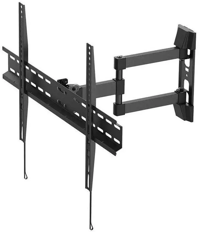 The Monoprice Full Motion Articulating TV Wall Mount Bracket focuses on a minimal footprint on the wall. Minimizing the amount of space required for mounting allows for optimal mounting positioning. The single arm design allows for a greater range of side to side motion. The large TV plate design accommodates a large variety of screen sizes including large format, lightweight displays.