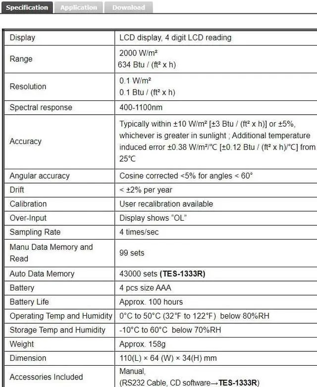 TES-1333 Cell Energy Software/Tester Solar Power Meter Radiation Detector