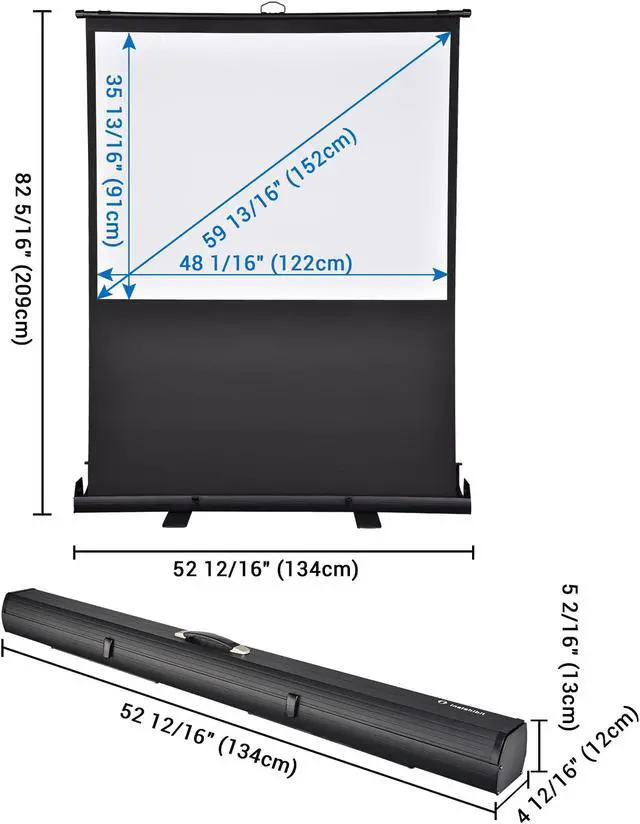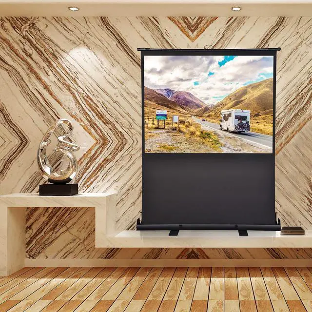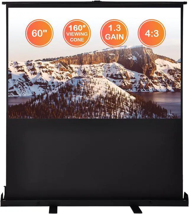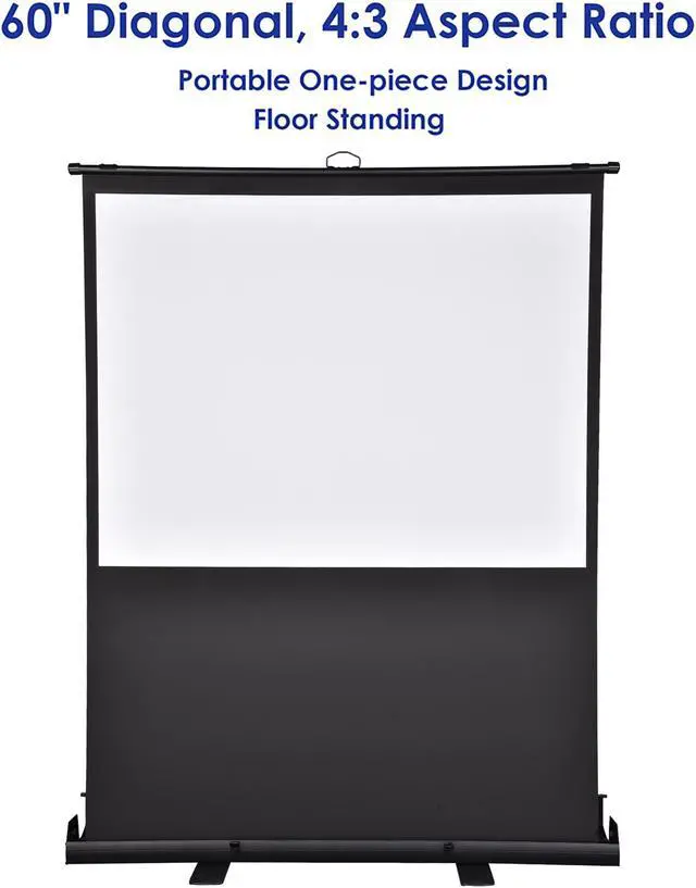 - Portable Design - 60" Pull Up Floor Projector Screen features a one-piece design and can be retracted fully into the case, ensuring easy storage, transport and perfect working synergy with handheld projectors for playing video presentations on-the-go