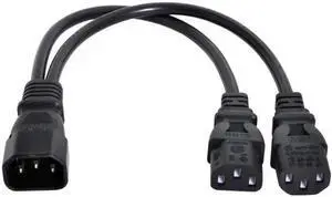 PW-037 Single C14 to Dual C13 5-13R Short Power Y Type Splitter Adapter Cable Cord