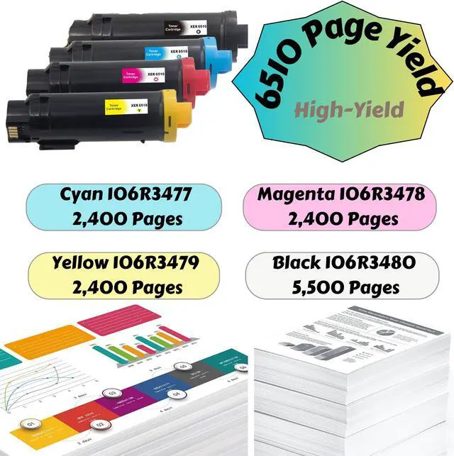 Phaser 6510 Compatible Set of 4 Toners for Xerox Phaser 6510 6510n 6510dn 6510dni and WrokCentre 6515 6515n 6515dn 6515dni High Yield with Up to Date Chips