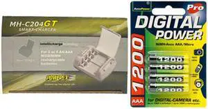 Powerex MH-C204GT AA / AAA Smart Battery Charger & 4 AAA NiMH AccuPower Micro Batteries (1200 mAh)