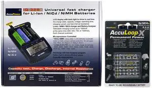 IQ-328 AA / AAA LCD Charger & 4 AA AccuPower AccuLoop-X Batteries (2600 mAh)