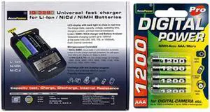 IQ-328 AA / AAA LCD Charger + 4 AAA AccuPower Micro NiMH Batteries (1200 mAh)