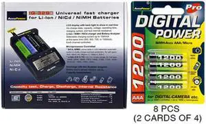 IQ-328 AA / AAA LCD Charger + 8 AAA AccuPower Micro NiMH Batteries (1200 mAh)