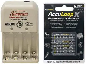 Sunbeam AA / AAA Battery Charger + 4 AAA AccuPower AccuLoop-X NiMH Batteries (1100 mAh)