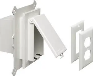 Arlington DBVS1W-1 Low Profile in Box Recessed Outlet Box Wall Plate Kit for New Vinyl Siding Construction, Vertical, 1-Gang, White