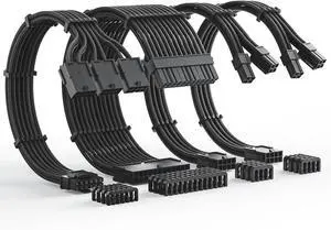 Asiahorse Power Supply Sleeved Cable for Power Supply Extension Cable Wire Kit 1x24-PIN/ 2x8-PIN (4+4) M/B,3x8-PIN (6+2) PCI-E 30cm Length with Combs