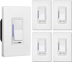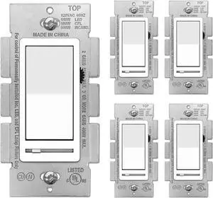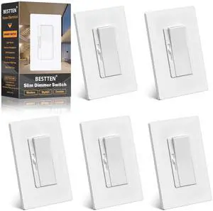 BESTTEN 5 Pack Super Slim Slide Dimmer Light Switch, Quiet Dimmer Switch, Wall Plate Included, Single Pole or 3 Way Dimmable Switch, Max 300W LED, CFL, 600W Incandescent, cETL Listed, White