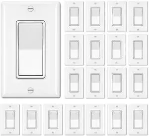 [20 Pack] BESTTEN Single Pole Decorator Wall Light Switch with Wallplate, 15A 120/277V, On/Off Rocker Paddle Interrupter, cUL Listed, White
