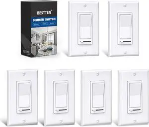 [6 Pack] BESTTEN Rocker Dimmer Switch for Dimmable LED, Halogen and Incandescent Bulbs, Single-Pole or 3-Way, 120V, cUL Listed, White