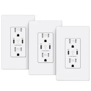 BESTTEN 3 Pack - GaN 65W USB C Wall Outlet, Type C Supports Power Delivery 3.0, 15 Amp Tamper-Resistant Receptacle with Dual USB C Ports, Screwless Wallplate Included, cETL Listed, White