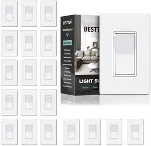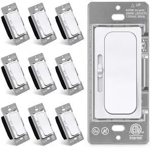 BESTTEN 10 Pack Super Slim Digital Dimmer Switch, Single Pole/3-Way Quiet Dimmer Light Switch, for Dimmable LED, CFL, Incandescent, Halogen, Screwless Wallplate Included, cETL Listed, White