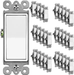 BESTTEN 20 Pack Single Pole Decorator Light Switch with Screwless Wallplate, Paddle Rocker Wall Switch,15A 120/277V, On/Off Interrupter, cUL Listed, White