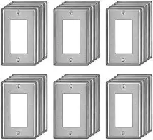 BESTTEN 1-Gang Decorator Metal Wall Plate with Protective Film, Corrosion-Resistant Heavy Duty Decor Faceplate, 30 Pack Stainless Steel Outlet and Switch Cover, Brushed Finish, Standard Size, Silver