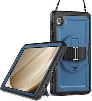 BONAEVER Case for Samsung Galaxy Tab A9 8.7 Inch 2023 Model SM-X110/X115/X117 Shockproof Protective Cover with Screen Protector Kickstand Hand/Shoulder Strap Pen Holder Navy Blue