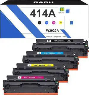 BABU 414A with Chip Compatible Toner Cartridge Replacement for HP 414A 414X W2020A Set Works for HP Color Laserjet M455dn M480f M479fdn M479fdw M454dn M454dw (Black Cyan Magenta Yellow)