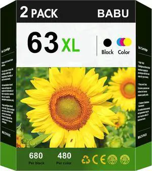 BABU Remanufactured Ink Cartridges Replacement for HP 63xl 63 Work for HP Envy 4510 4520 4522 4525 Deskjet 1112 2130 3630 3640 Officejet 3830 4650 5230 5260 (1 Black&1 Tri-Color)
