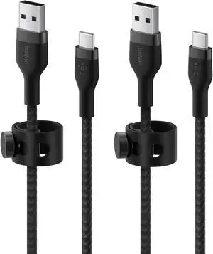 Belkin BoostCharge Pro Flex Braided USB-C to USB-A Cable (6.6ft/2M), USB-C USB-IF Certified Fast Charging Cable for iPhone 16, iPad Pro, Galaxy S24, S23, Note, Pixel, & More - Black (2-Pack)