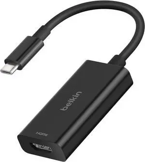 Belkin USB-C to HDMI 2.1 Adapter, Tethered 4.33in Cable w/ 8K @ 60Hz, 4K @ 144Hz, HDR, HBR3, DSC, HDCP 2.2, USB-IF - Works w/Chromebook, Certified for MacBook, iPad Pro, & Other USB-C Devices - Black