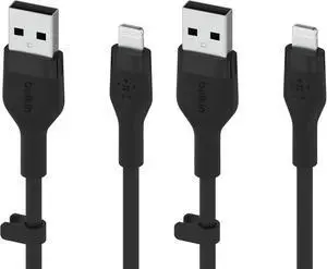 Belkin BoostCharge Flex Silicone USB Type A to Lightning Cable (3M/10FT), MFi Certified Charging Cable for iPhone 13, 12, 11, Pro, Max, Mini, SE, iPad and More, 2-Pack, Black
