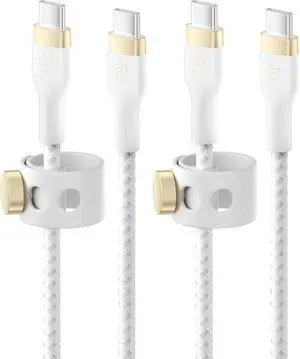 Belkin Boost Charge Flex Braided USB-C to USB-C Charger Cable (6.6ft/2M), USB-IF Certified Fast Charging Cable for iPhone 16 Series, MacBook, iPad, Galaxy S24, S23, & More - White (2-Pack)