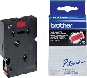 Brother TC-491 | Original Label Tape Cassette | Black on Red | 9 mm