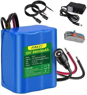 Rechargeable 12V 5600mAh Li-ion Battery, Bare Leads Wire Replacement Battery Pack with Charger Compatible with 12V Devices RC Car, LED Strip, DIY, Electronic Organ, Optical Network Unit, CCTV Camera