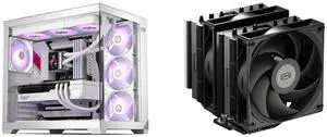 Cooler Master Hyper 212 Pro aRGB CPU Cooler, SickleFlow Edge 120 PWM Fan, Composite 4 Copper Heat Pipes, 152mm Tall, Sleek Top Cover, AMD Ryzen AM5|AM4, Intel LGA 1851|1700 Brackets“ Nice large and quiet cooling fans ”