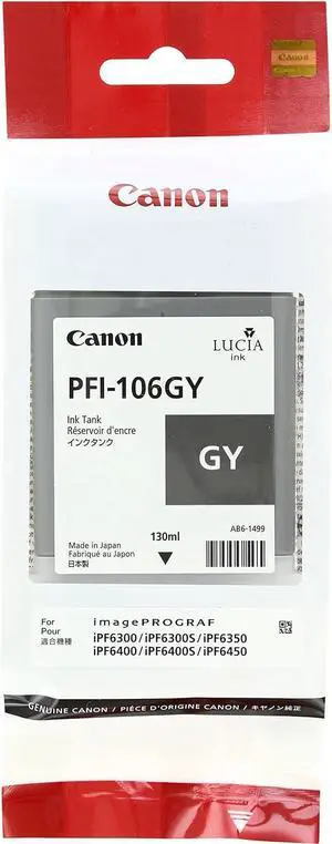 Canon PFI-106GY 6630B001AA iPF6400 iPF6450 Ink Cartridge (Gray) in Retail Packaging