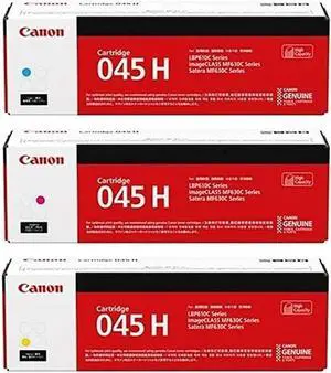 Canon 045H Toner Cartridge Set for Color imageCLASS MF634Cdw, MF632Cdw - Cyan, Magenta and Yellow High Yield -3 Pack in Retail Packaging