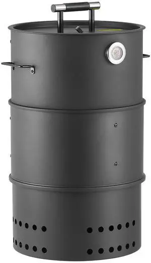 Charcoal Smoker Grill, 18.5" Barrel Charcoal BBQ Smoker, Coated Steel Outdoor Barbecue Grill with 2 Grilling Grates, 1 Hanging Rod, 6 Hooks & Thermometer, Ideal for Party Backyard Patio Cooking