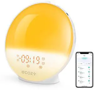 Sunrise Alarm Clock for Heavy Sleepers, Smart Wake Up Light with Sunrise/Sunset Simulation, App & Voice Controlled, Natural Sounds & FM Radio, 4 Alarms & Snooze, 7 Colors Night Light