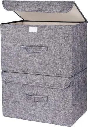 DIMJ Fabric Storage Box with Lid - 2Pcs Closet Storage Bin with Handle Organizer and Storage Foldable Decorative Basket with Lid Storage Containers Clothes,Bedroom, Office(Dark Grey)