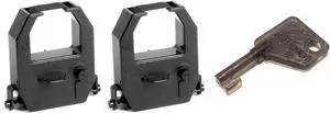 (Ribbons+Key Bundle) 2 Pack Compatible Replacement Ribbon Cartridge + Key for Amano PIX-10/15/21/25/28/55/75/95 TCX-35/45/85/88/90