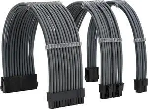 FormulaMod Sleeve Extension Power Supply Cable Kit 18AWG ATX 24P+ (2) EPS 8-P+ (3) PCI-E8-P with Combs for PSU to Motherboard/GPU (Grey)