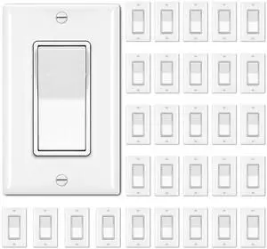 30 Pack Single Pole Decorator Light Switch, Rocker Paddle Wall Switch, On/Off Interrupter, w/Wall Plate, 15A 120/277V, UL Listed, White