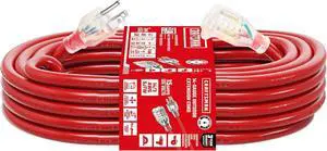 CRAFTSMAN 25 ft. Heavy-Duty Industrial Indoor/Outdoor Extension Cord Waterproof, 12/3 SJTW Light Up 3 Prong Extension Cord, 15A/1875W/125V, ETL Certified