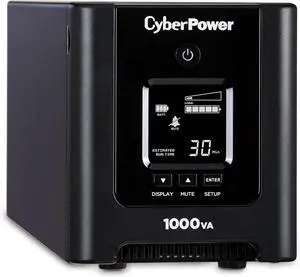 CyberPower CP1500PFCLCD PFC Sinewave UPS System, 1500VA/1000W, 12 Outlets, AVR, Mini Tower, Black
