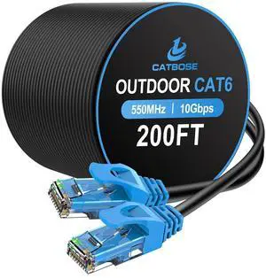200FT Cat6 Outdoor Ethernet Cable, In-Ground, Heavy Duty Direct Burial, 24AWG CCA Solid Cord, POE, UTP, Waterproof, LLDPE UV Resistant, Network, Internet, LAN, Cat 6 Patch Cable - 200 Feet