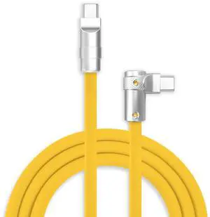 chubbycable FlexElbow Pro - 90 Degree Design 240W Fast Charge Cable Ultra-Thick Silicone Right Angle USB C Cable Phone Tablets Charging Cord, Yellow, Type-C to Type-C, 4.9FT
