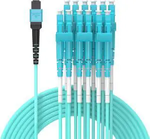 30M MPO/MTP to 12 x LC (6 Duplex) 12 Strands Breakout Cable,QSFP 40GBase-SR4, OM3 Fanout Fiber Optic Cable - Aqua, 30meters/100ft
